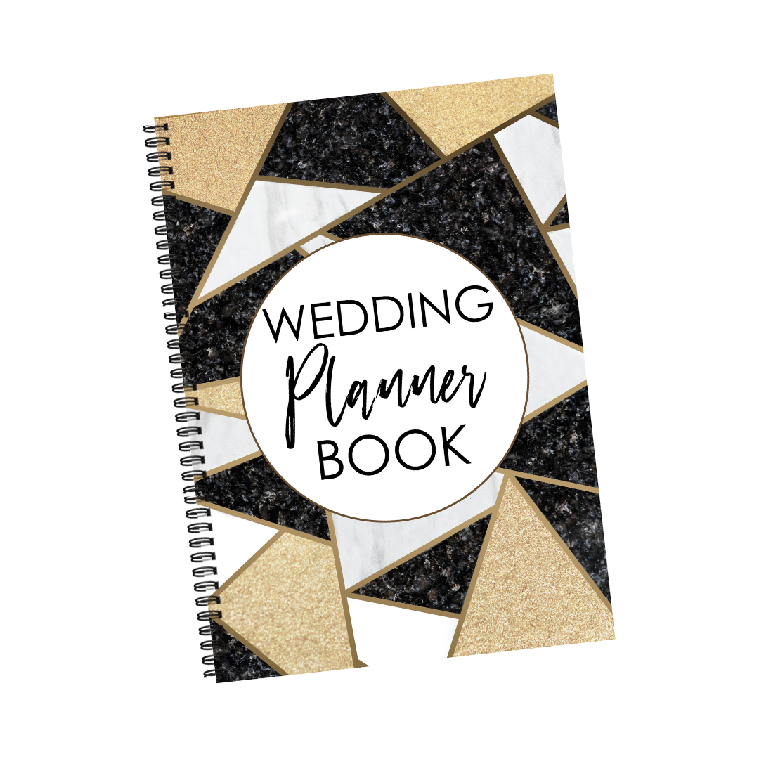 Wrapped in a modern black, white, and gold geometric design, this planner is perfect for the bride who’s organised, classy, and totally in control (even when the seating chart says otherwise).
