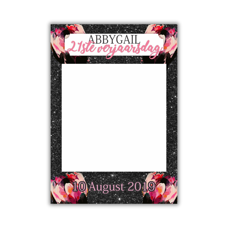 The theme displayed is purely for advertising purposes. Your selfie frame will be personalised to suit your celebration. This is the design fee only, with printing quoted separately depending on size and material.