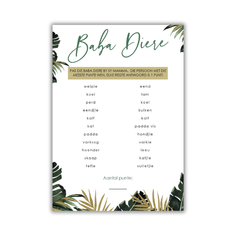Perfect for baby showers of all sizes – and available in Afrikaans or English.
