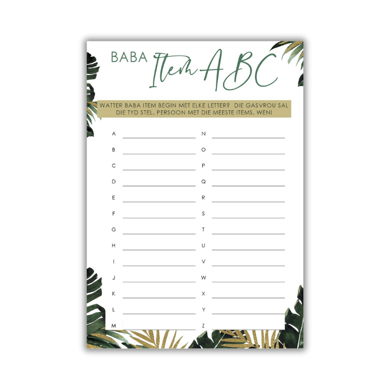 Make your baby shower unforgettable with our Custom Baby Items ABC Game – Host Sets the Time Edition! This isn’t your ordinary alphabet game – here, your guests will race against the clock to list as many baby-related items as they can from A to Z. The twist? The host gets to choose the challenge by setting the timer!