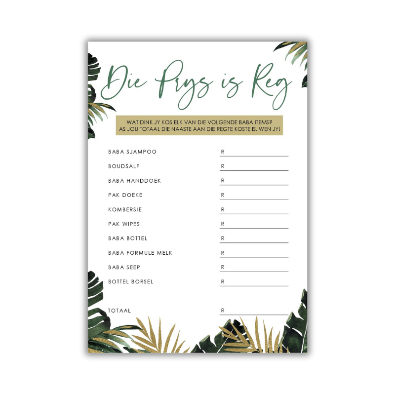 Available in Afrikaans or English, and delivered either as a handy PDF you can print yourself or as a professionally printed game ready to go.