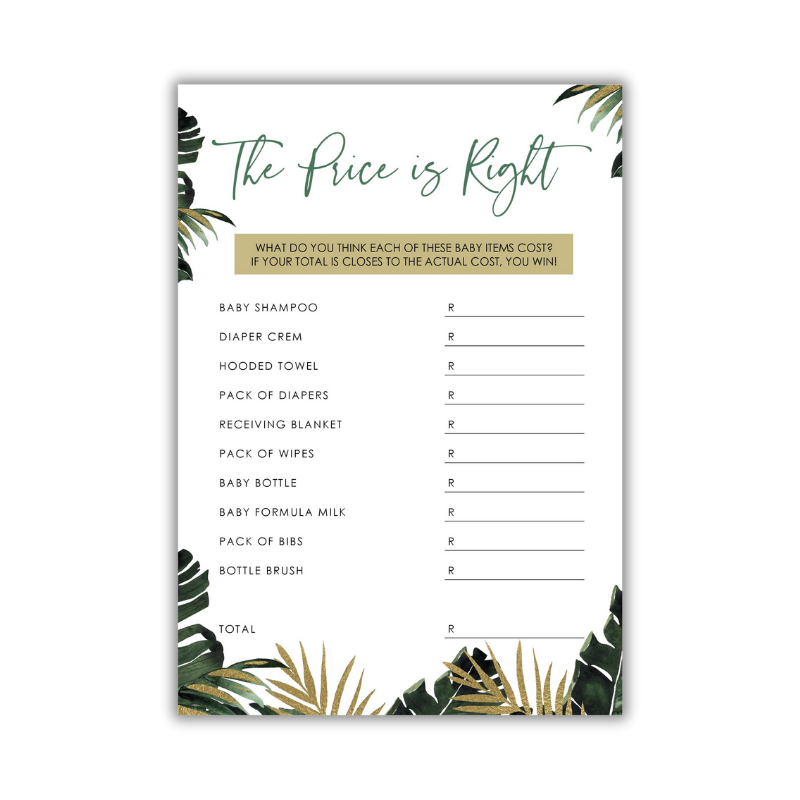 Get ready to test your baby knowledge and your budgeting skills with “The Price Is Right” — the baby shower game that turns price guessing into a hilarious competition! Guests will try to guess the price of common baby items, from nappies to baby bottles, and whoever gets the closest without going over wins big bragging rights (and maybe a prize!).