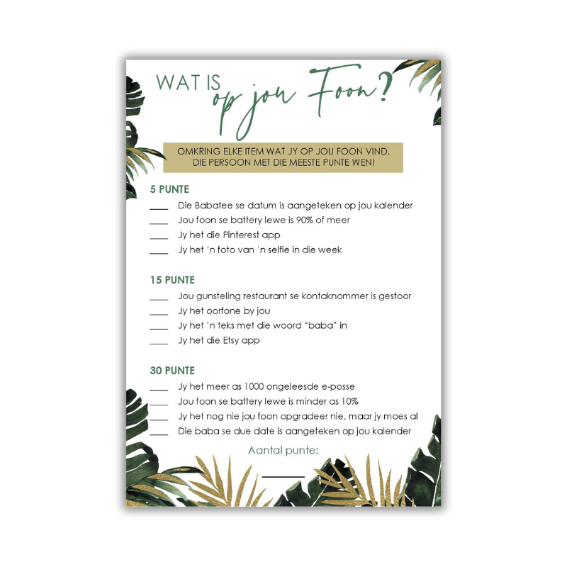 Offered in Afrikaans or English, this game comes as a handy PDF for easy home printing or professionally printed and delivered to you, ready to play!