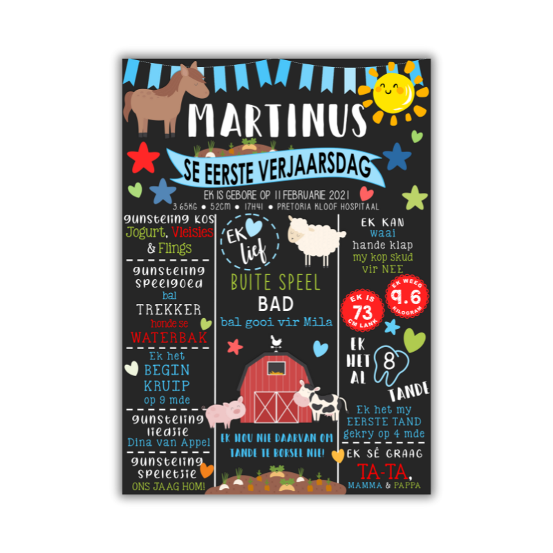Celebrate your little one’s big day with a custom milestone board that highlights all their favourites and fun facts—designed to match your party theme!