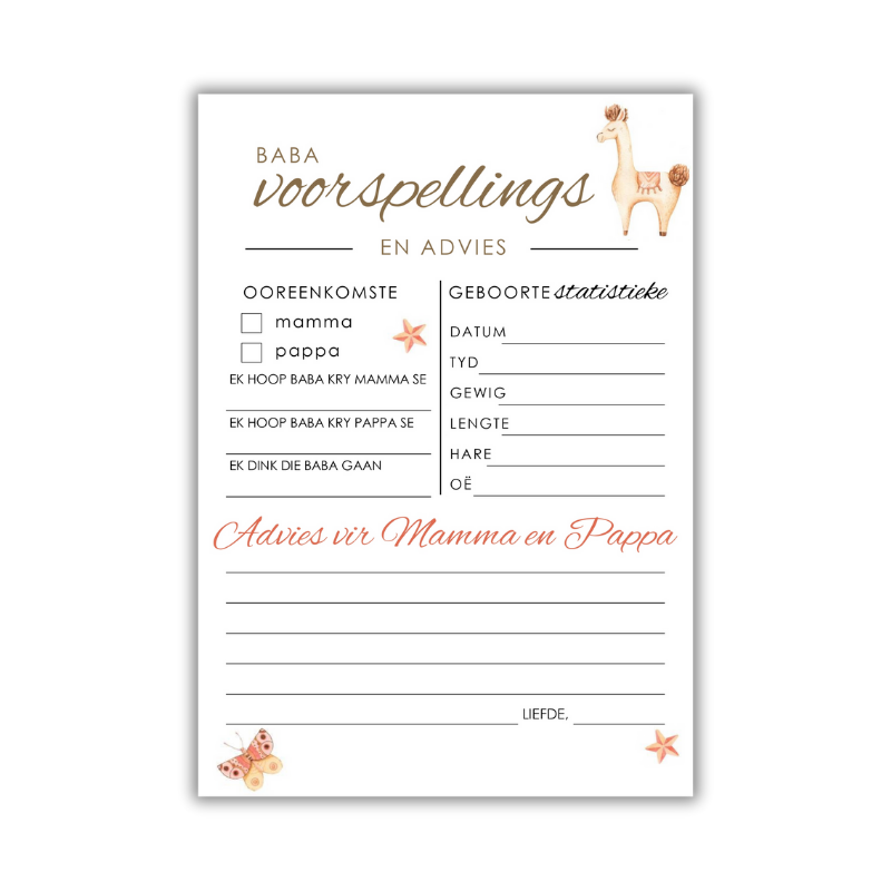 Give your baby shower a dash of personality with this heartwarming and cute Baby Predictions & Advice game — featuring a boho llama theme that’s as trendy as it is adorable!