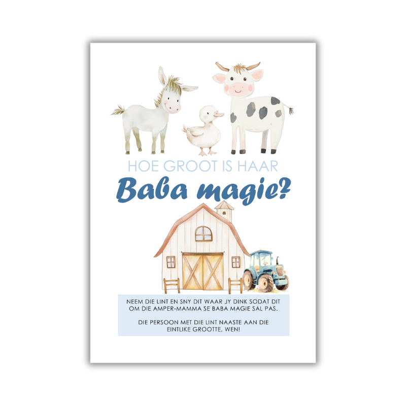 Once you make your payment through YOCO, you’ll get instant access to download the file and print as many as you need. No waiting, no stress — just good old belly-measuring fun! Designed with soft farmyard animals and a sweet countryside flair, it’s the perfect icebreaker for your rustic or animal-themed baby shower.