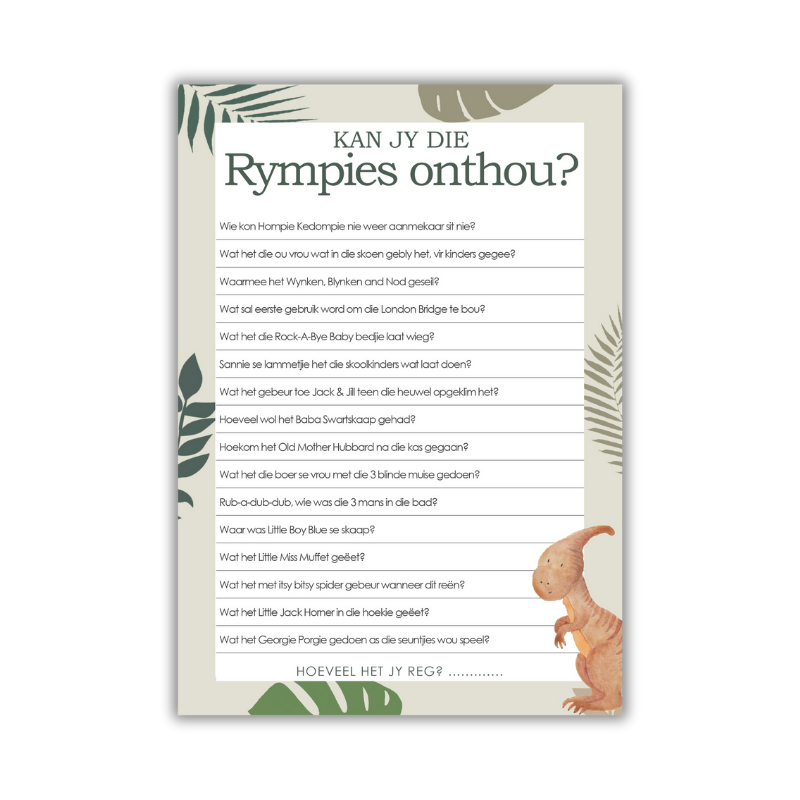 Step into a world where nursery rhymes meet dino roars! This Finish the Nursery Rhyme game is a sweet and funny way to test your guests’ memory skills as they fill in the missing words from classic children’s rhymes.