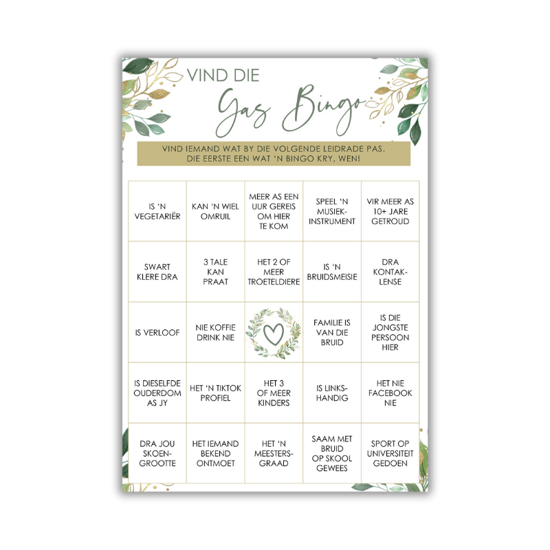 Styled with botanical greenery, natural leaf elements, and a dash of gold, this printable is perfect for boho, garden, or minimalist bridal showers.
