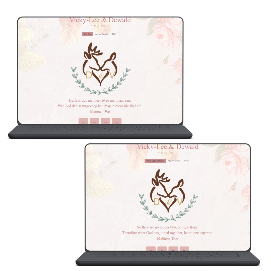 Whether you’re blending Afrikaans and English, isiXhosa and English, or any other local combo, this translation add-on ensures all your guests feel included and informed. From the romantic welcome message to RSVP instructions, we’ll translate every section of your website so no one misses a thing — or a toast!